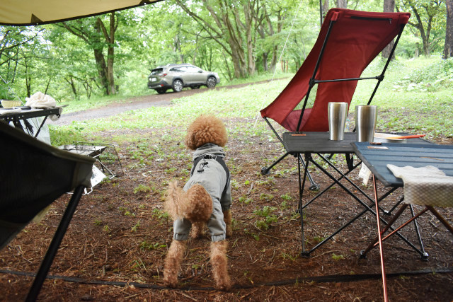 我らのテン場は傾斜地の下の方なので水がたまりがち。
