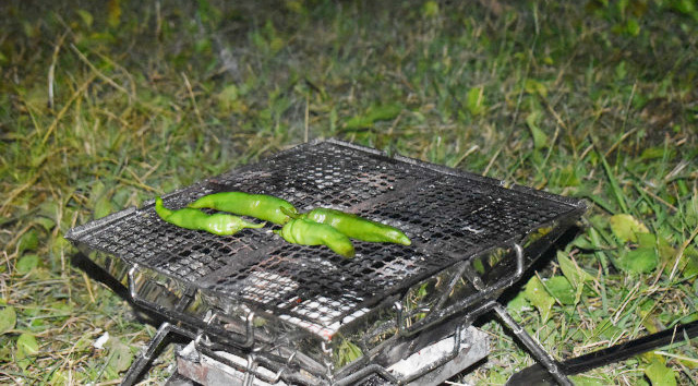 キャンプ場の横のアスリートビレッジセンターで買ったししとうが、