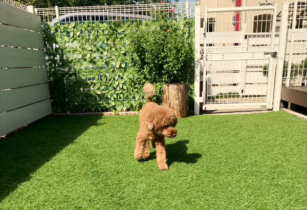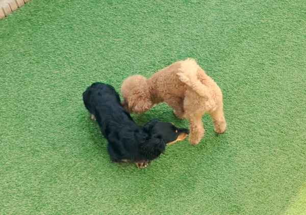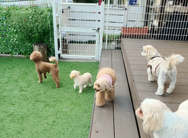お庭で他のワンコと一緒に遊ばせてもらえるよう。
